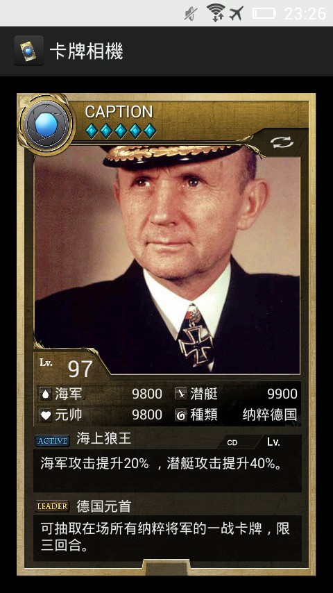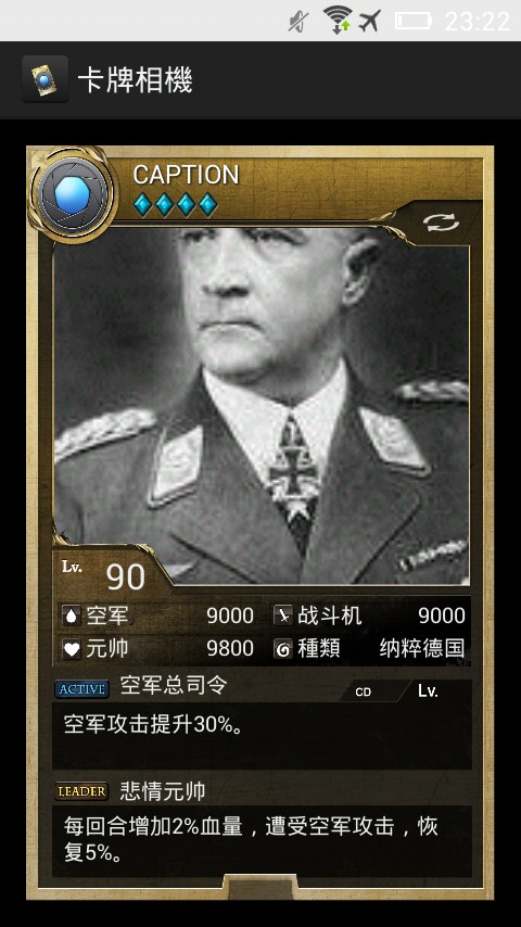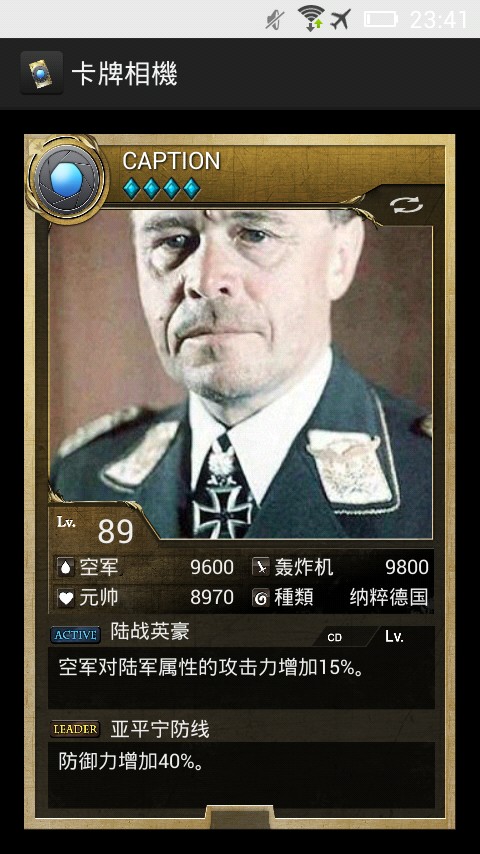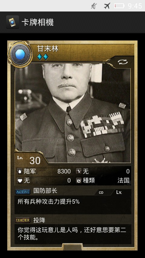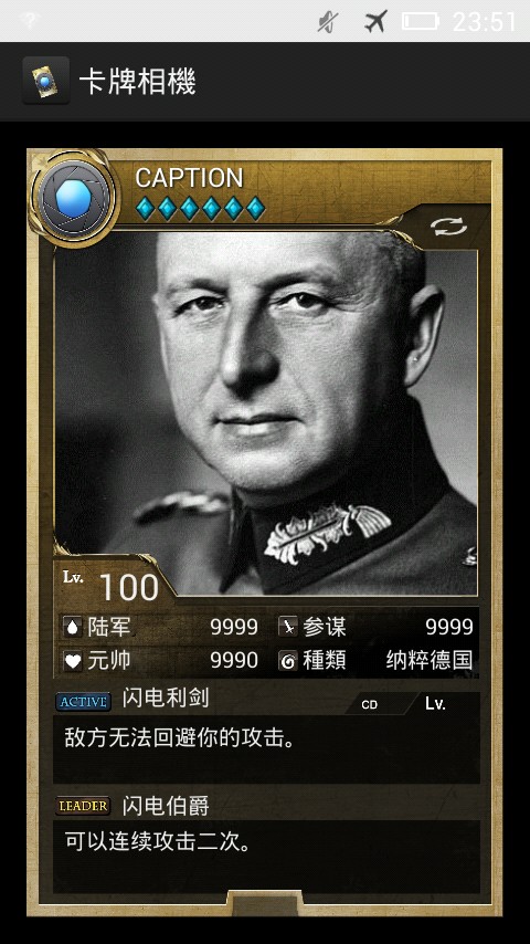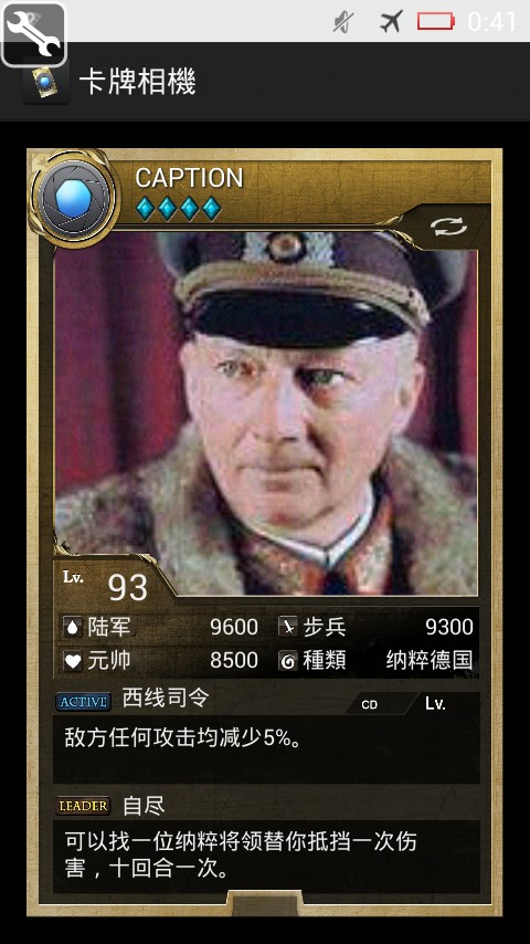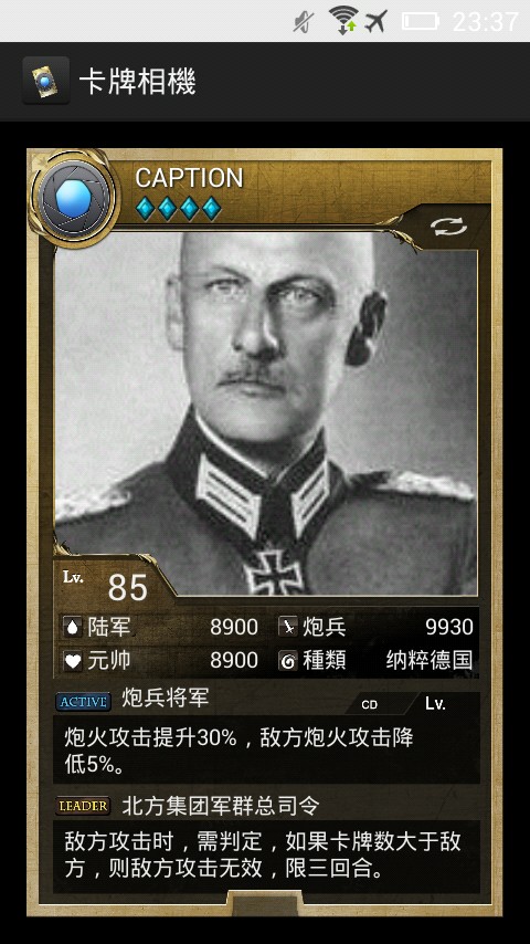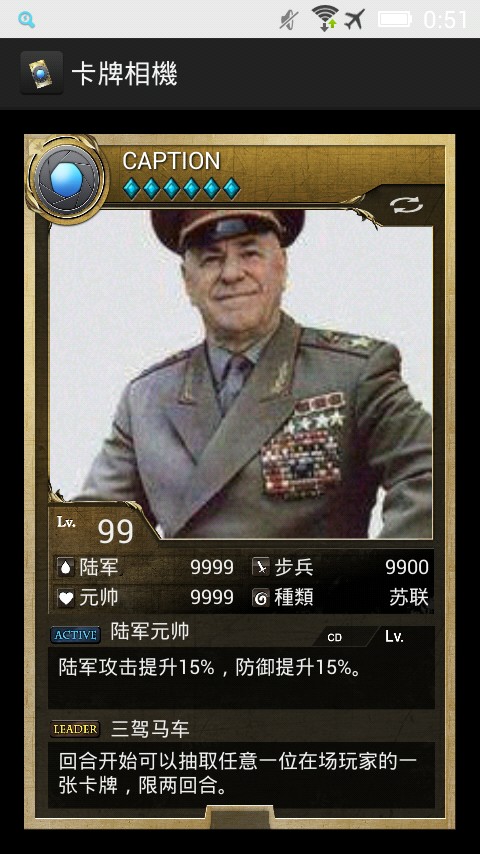 嗯,我本人比较喜欢二战史,再加上我想得瑟一下我做的图,为了有点成就感,再有,这个软件确实挺好用,先发几张效果图,让你们看看效果在决定是否下载这个软件(如果有蓝色的卡牌,是本人手机机型问题,截图不对)顺便了解一下二战将领。