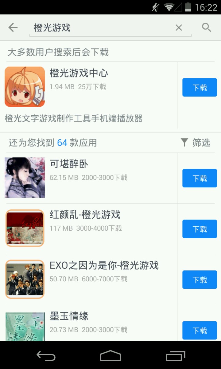 当前安卓平台仅检索到这款 在其中便能下载橙光发布的游戏