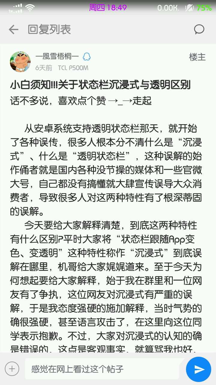 2015-05-15 [有回复] TCL P500M小白须知!!!关于状态栏沉浸式与透明区别