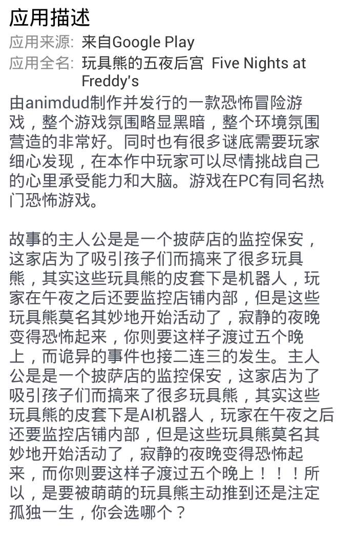 【玩具熊的五夜后宫】讲述了一个披萨店的守夜保安被一群禽兽玩弄得尖叫连连的故事~~~(感觉节操被吃-_-||)游戏感觉还好,不是很恐怖,只是想说,都有禽兽帮你看店了,为什么还要找个受来,店长你一定很……