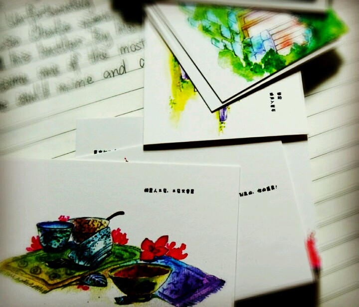 咦~这种明信片好特别~是水彩的么
