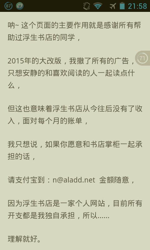 2015-06-07 [有回复] 中兴N881E推荐一个网站『浮生书店』