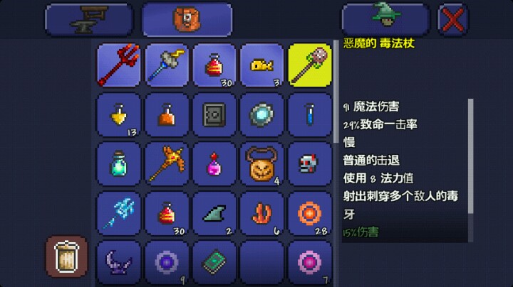 首先,泰拉瑞亚前期发展主要要做的是挖矿,招NPC。金银铜铁都要挖,也可以多刷几个世界。前期还要多跑图,不嫌累的话也可以到地狱一游。一定要到世界边缘的海底,里面的黄金三叉戟和回旋镖之类的都要留着。你的世界肯定会有血腥之地或腐败之地之中的一个,一定要进腐地,装备好铁甲就可以,拿好三叉戟,一定要拿几个炸弹。因为没有高级镐子你是挖不开那些石头的,这里的炸弹可以从探索到的宝箱里拿,也可以从招来的毁灭者里买。我们去打世界吞噬者。这真没什么可讲的,注意走位就好。打败后主要拣魔金矿,回去做镐子,再做把剑或者锤子或斧子都可以。有了相对强的武器后多刷几个图再打几次,一定要做全套魔金盔甲。
