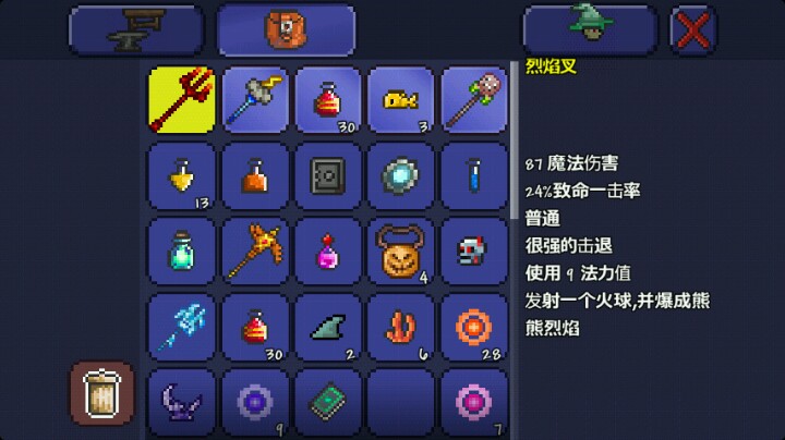 回家造几个篝火安在地牢入口旁边,也不要忘了找生命水晶狂补心。等着打骷髅队长时用,备好武器后,打骷队。它用手拍你时记得躲开,头下来时就拿三叉戟或大锤子猛砸,一定要在天亮前干掉它。