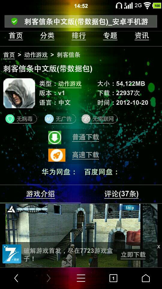 刺客信条有一个3D的,大概70多M,