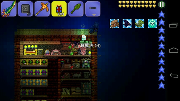 要想富,先撸树,刚出来就有200金矿,黑耀石,狱岩石,还有一块魔镜,看来只要有熔炉就有防具了