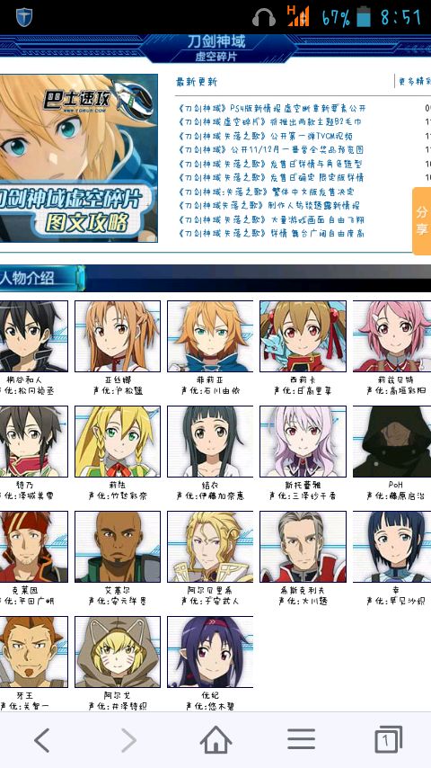 虽然刀剑神域被封很另人遗憾,但我们还有刀剑神域游戏,刀剑神域无限时刻,汗化中文版手机游戏,虽然不知道以后会不会被封,但想玩的就抓紧了,单机游戏,从艾恩格朗特76层到100层,每层都是一个3D世界,野怪无数,我也是刚开始完,76层都没击破,地图太大。虽然早就出了最新的刀剑神域虚空碎片和刀剑神域失落之城但只有刀剑神域无限时刻不卡还是汗化可以手机玩,想玩的朋友可以从应用汇下个小鸡摸拟器,PSP的,手机完美运行。