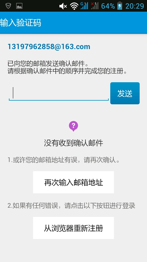 你可以试试在浏览器上边注册,,我当初就是在UC上边注册的,邮箱我用的新浪来着