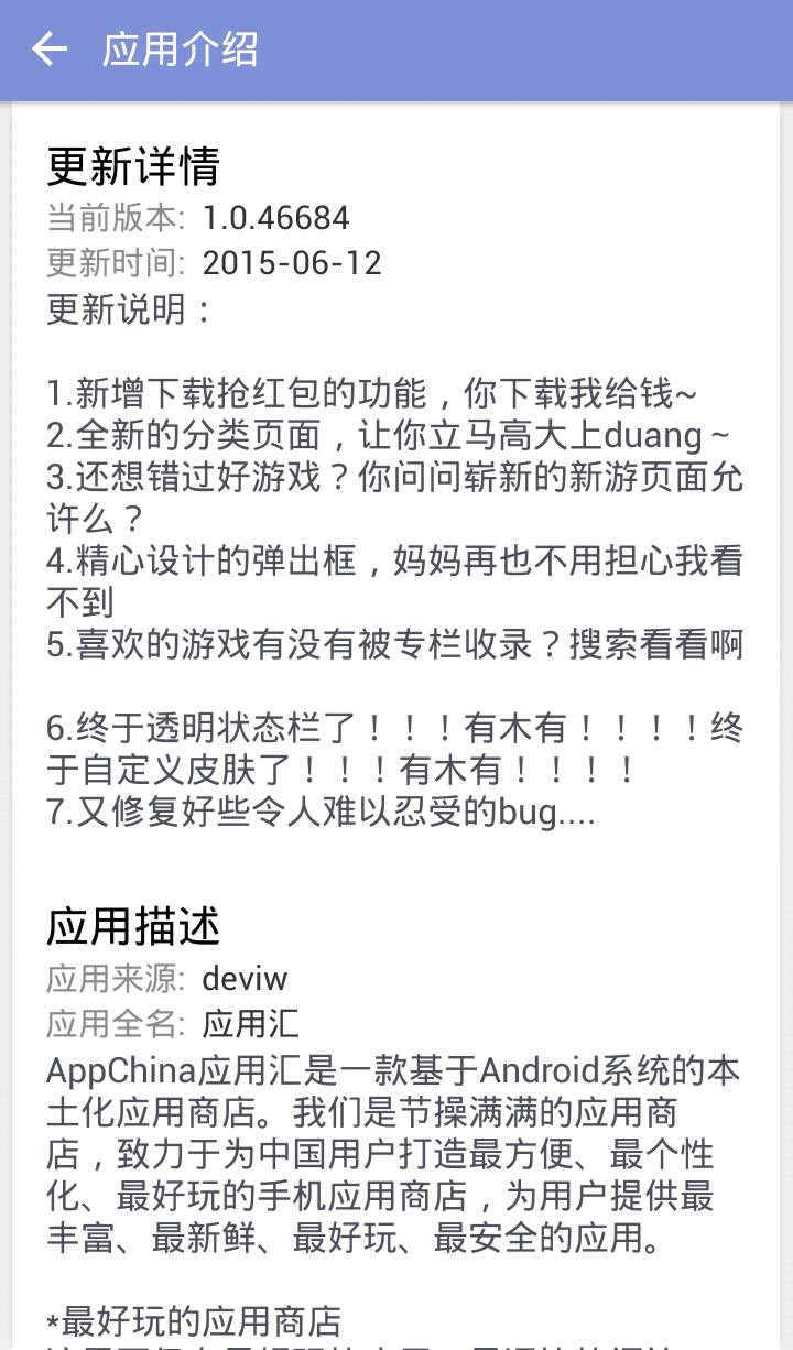 首先,陪伴我的最热门APP当然是【应用汇】啦~它自称“史上无敌宇宙第一神级应用商店”,确实也是小七用过的同类中最好的。大家看到了帖子就一定安装了汇汇(废话),但是小七想提醒一下没更新的汇员(?)要更新哦~
