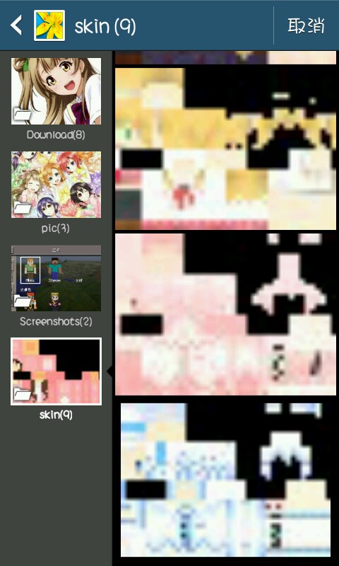这个简单~因为你们用应用汇保存的图片呐……应用汇保存的图片是jpeg格式的。我的世界是不能识别的,去文件管理吧图片的###.jpeg改为###.png就可以呐~(๑•ૅω•´๑)