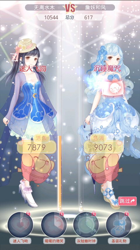 【技能选择】建议 暖暖的微笑 迷人之吻 灰姑娘时钟 圣诞礼物,两个加分两个减分(:3▓▒