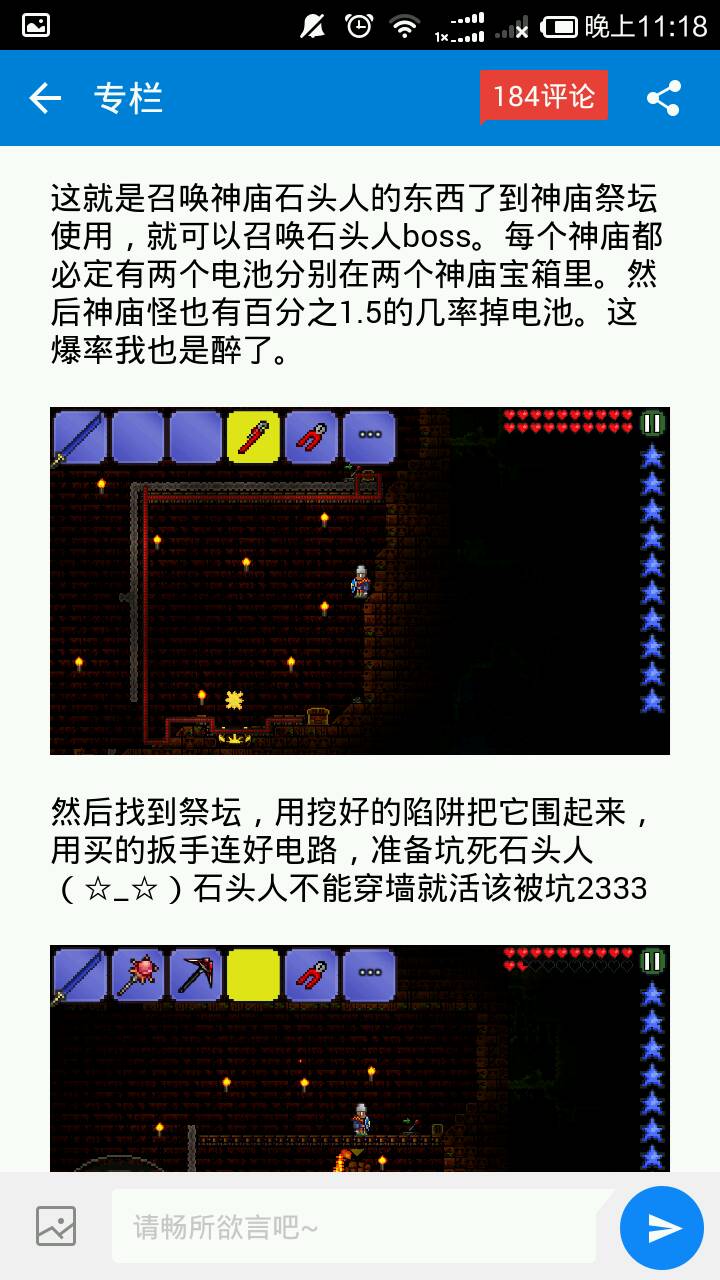 你開那的寶箱,可以開到電池,用他點一下神廟盡頭的一個發光的黃黃的東西,就可以召喚石巨人。