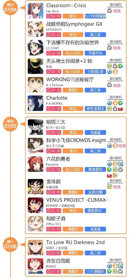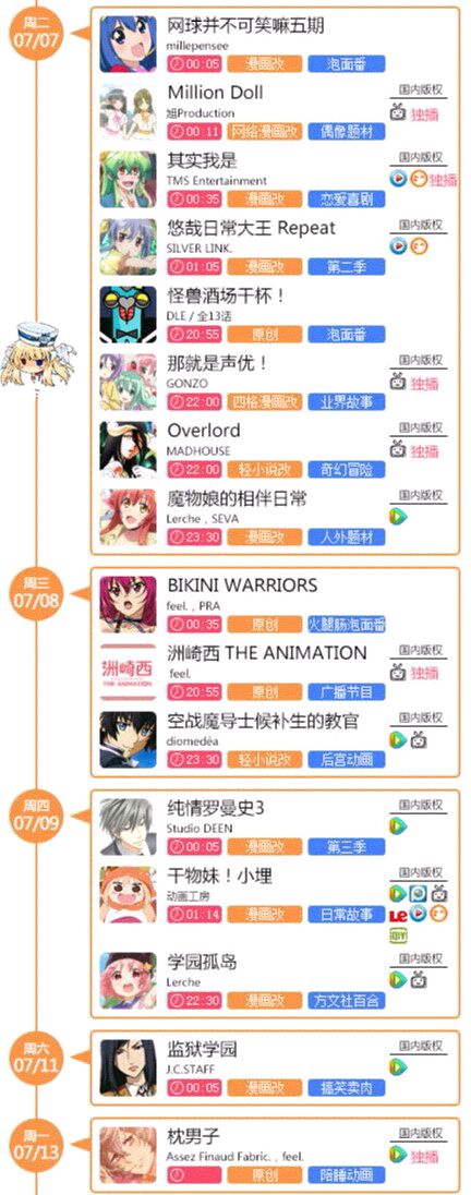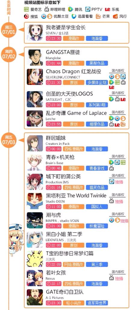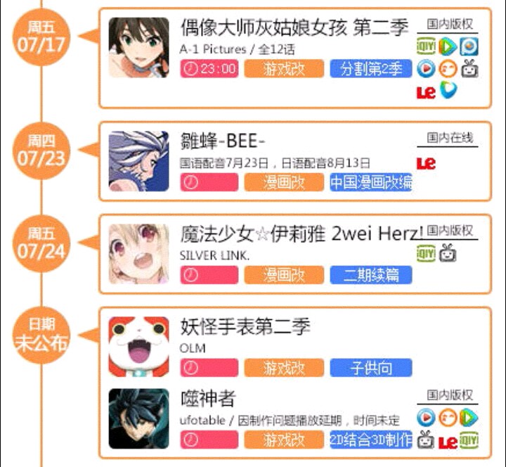 首先,来看看新番时间&版权表
