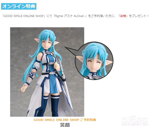 最近,MAX Factory公司推出了《刀剑神域 第二季》亚丝娜蓝发水精灵figma可动手办,目前开放预约中。另外,如果在GSC商店购买还有“眯眼笑”表情特典。
