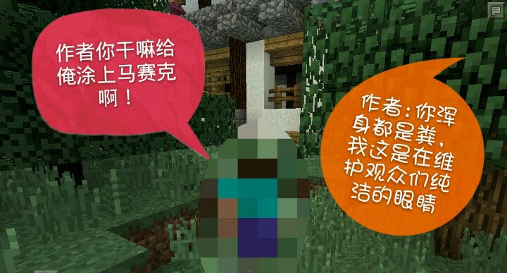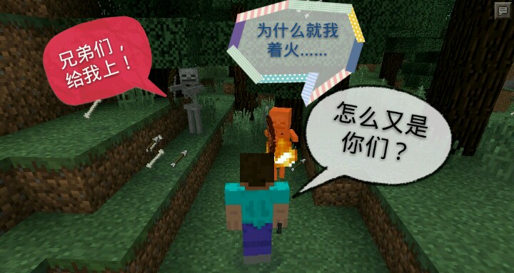 第七集史蒂夫逃离了发现苦力怕的小岛,又回到镇子附近,当他跳出水面时,一大帮骷髅就在他眼前!史蒂夫:“哎呀妈呀,怎么又是你们几个啊?”骷髅:“我们终于又找到你这个乡巴佬了,兄弟们,上了他!”一大帮骷髅从树下冲过来,可……一阵噼里啪啦(燃烧声)声过后,满地都是骨头和弓箭,史蒂夫无语O__O"…剩下的骷髅对死去的骷髅说:“你们笨啊,不会射箭吗?”死去的骷髅:“不早说……”嗖嗖嗖!史蒂夫:“俺可是有主角光环的保护,你们打不死俺的!额……啊啊,好痛,别打了,我错了,啊!!!”史蒂夫 卒(史蒂夫:作者,加薪,我死了!我:你想得美!去你的,吃板砖就有你份!史蒂夫:哎呀!)第二天,史蒂夫复活了,可是……史蒂夫:“尼玛啊,为什么把我出生在这么高的地方!”史蒂夫看了看下面,不算太高,于是就跳了下去……却掉进了楼下的化粪池……史蒂夫:“我怎么这么倒霉,作者你不给我工资就算了,还整我……T^T”史蒂夫一上岸,就发现自己有了马赛克……“作者我不活了,我要找苦力怕自杀!老王,我跟你来了……T^T”