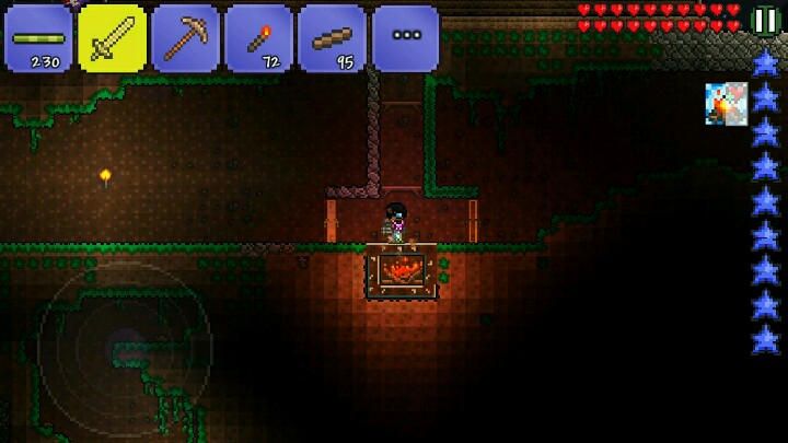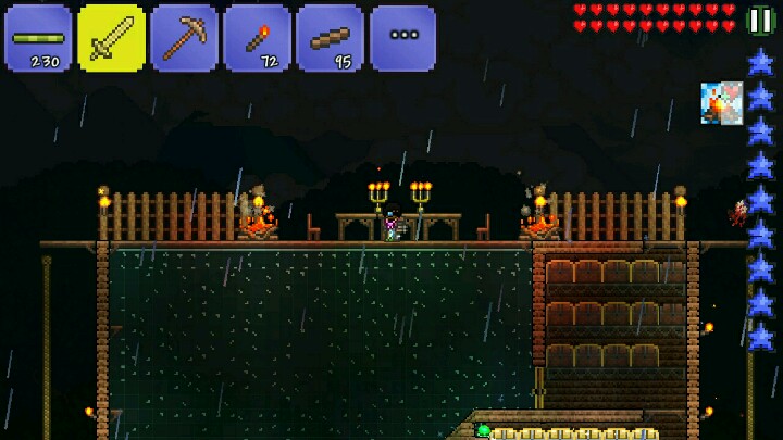 我到了地獄,打死…惡魔什麼什麼的,然後獲得巫毒娃娃(可以在我家附近招喚嗎?),但是不小心按到,結果就招喚出來了!平台還沒鋪好(岩漿太大片,水不夠)所以就GG了…