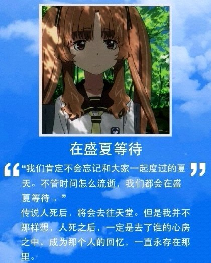 那些值得一看的治愈系动漫:1.夏目友人帐2.那朵花3.信蜂4.虫师5.水果篮子6.白兔糖7.key社三部曲:《CLANNAD》、《AIR》、《KANON》8.水星领航员9.小鸠