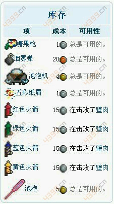 NPC名称 派对女孩入住条件 NPC有2%的几率在每个黎明入住(要有空房)NPC作用 销售泡泡机和糖果枪以及烟火。