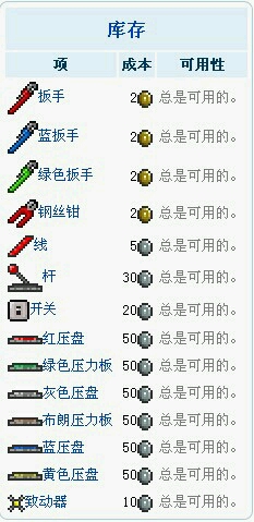 哥布林工程师贩卖的物品: