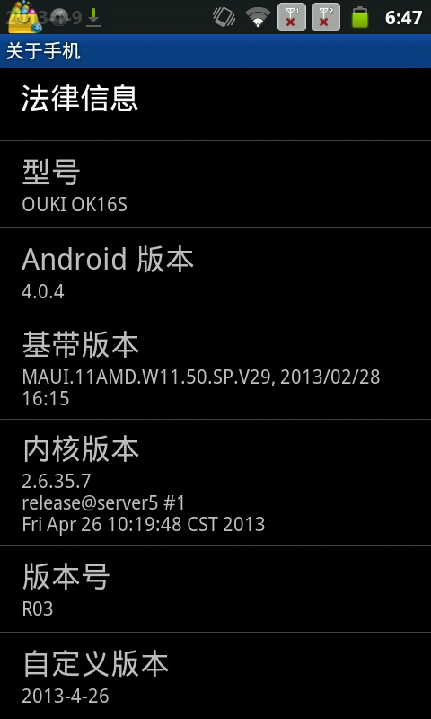 2015-07-14 [有回复] OUKI OK16S看看看!垃圾手机版本4.04基带版本2.6.1运行总197m