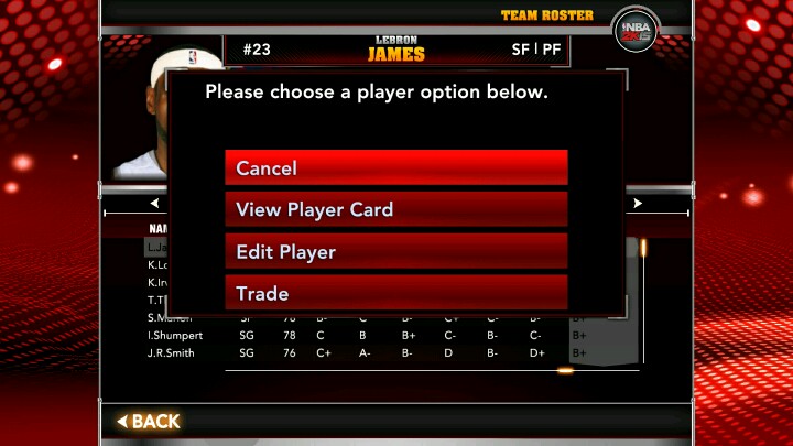 1.找到roster,2.然后点trade.3.把所选球员转会到自己的球队中