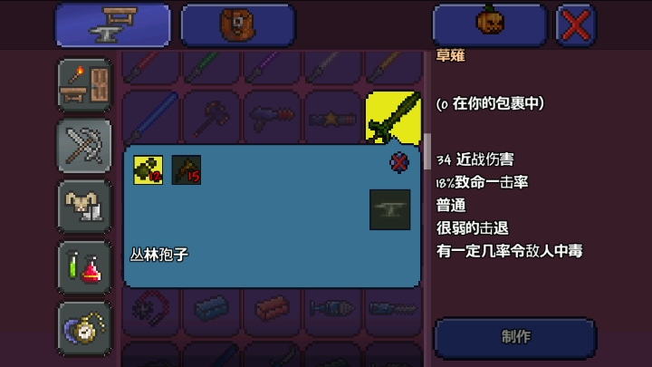 血金锭打克鲁斯之眼或邪神大脑,熔岩锭在地狱挖,丛林孢子在丛林找,就是我下面这个,独刺打各种蜂