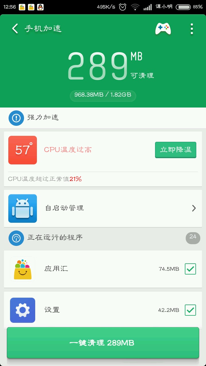可以用试试猎豹清理大师可以清理内存还可以给手机CPU降温