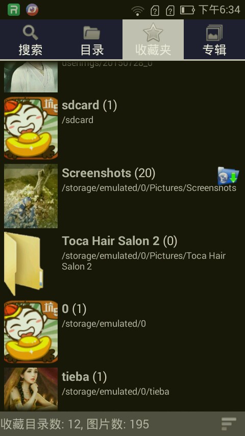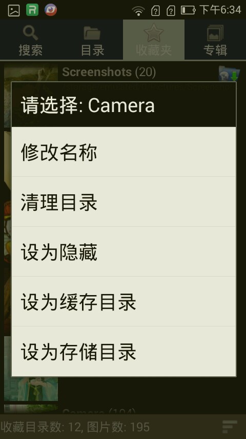 文件夹旁边有向下箭头的是储存目录,只要长按一个在图库里能看到的文件夹,把它选作储存目录就可以了。