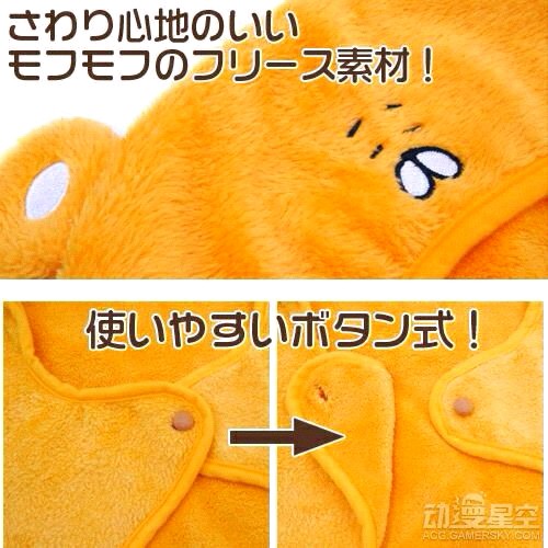 实体版的斗篷在造型上与动画版中出现的一模一样,头部都有一张仓鼠“囧脸”和两只小圆耳朵,采用按扣的形式固定在下巴下面。布料带有绒毛,裹起来更有仓鼠那种毛茸茸的可爱感觉。喜欢小埋的粉丝就通过这个斗篷来体验一下变身小埋吧。