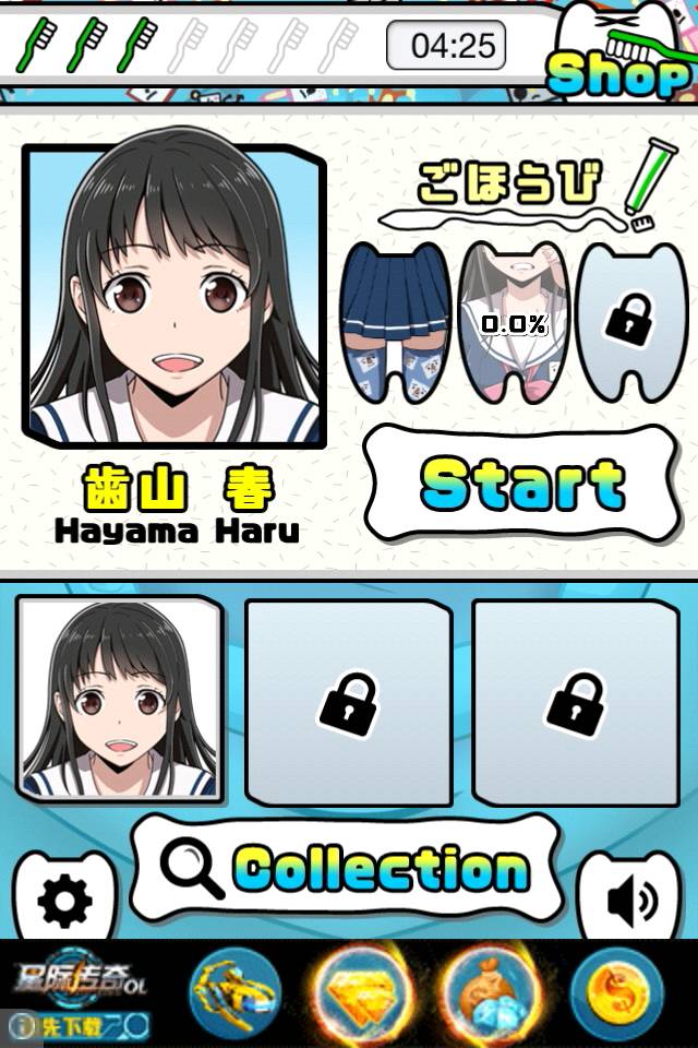 这款手游也算是小手游了,由一个名不见经传的开发厂商 Tokyo Otaku Games 制作,游戏内容就是让玩家选三个个性不同的妹子,为她们亲手刷牙,玩家需要用自己的牙刷去除妹子口腔内的所有细菌,获得更高的分数,可以解锁稀有插图,而在你刷牙的时候妹子往往最后就是一脸潮红的样子,这手游还有氪金要素,玩家可以氪金去抽一些稀有的细菌或者是牙刷装备。