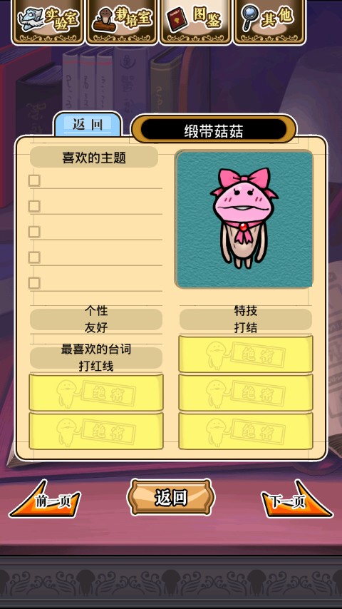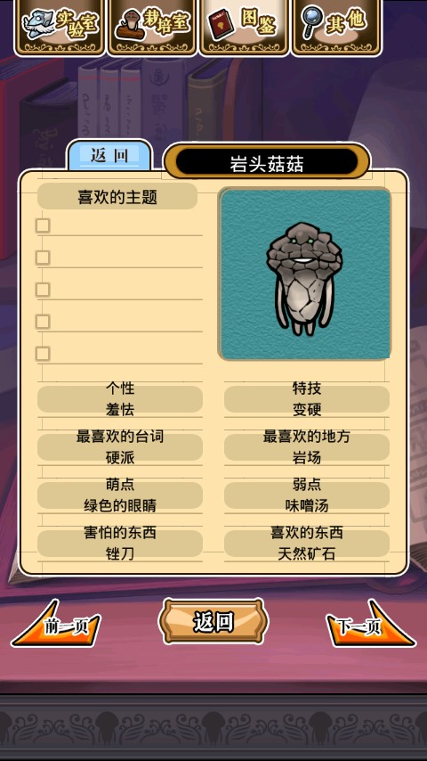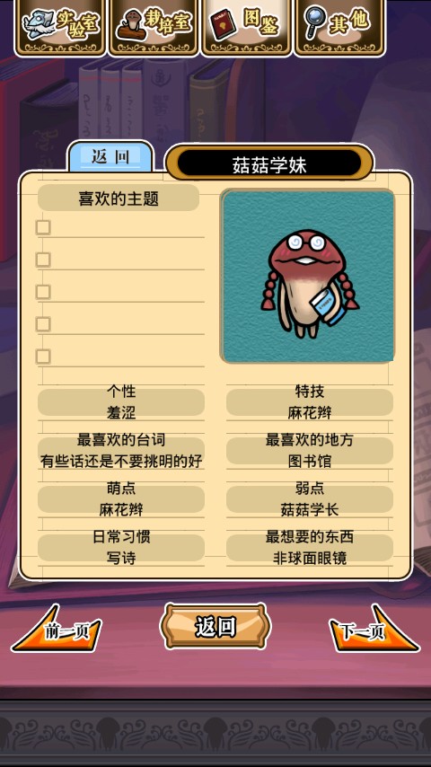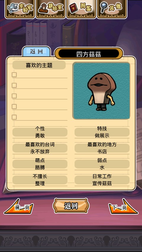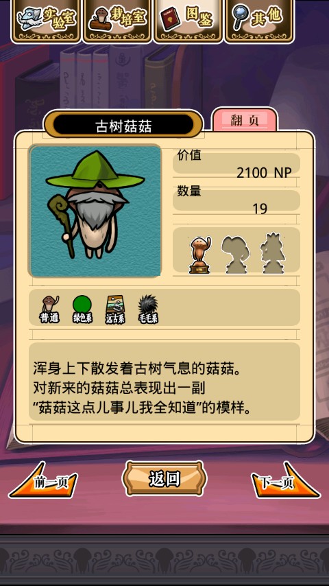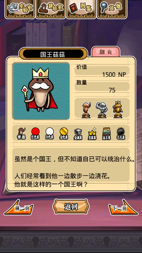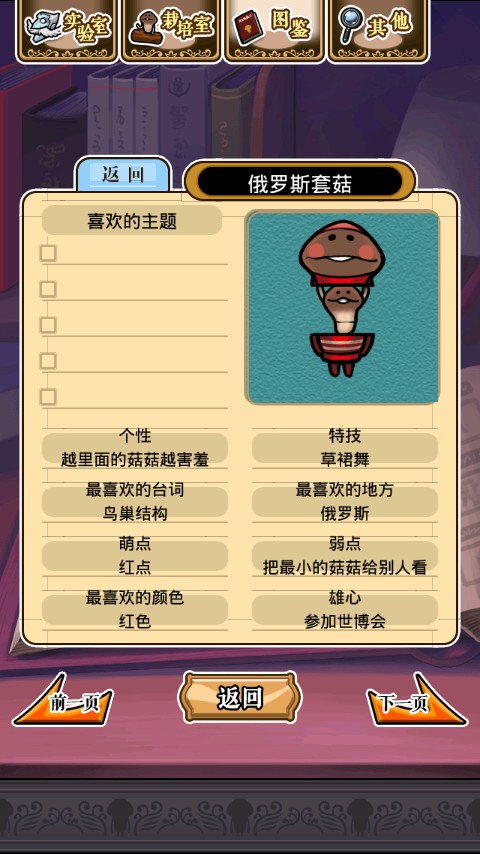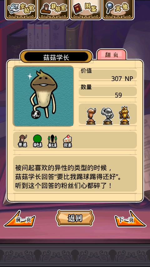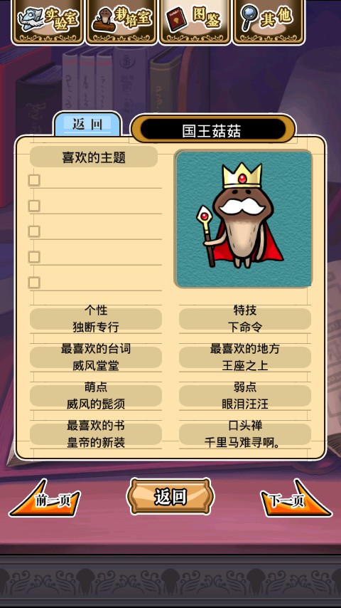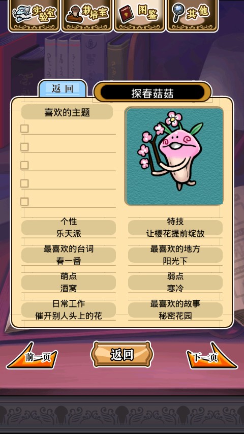 菇菇们的简介都很有趣,这一点真的很用心。在不同的培养室中有些菇菇的外表会发生一点变化,这些就放在下面讲了。