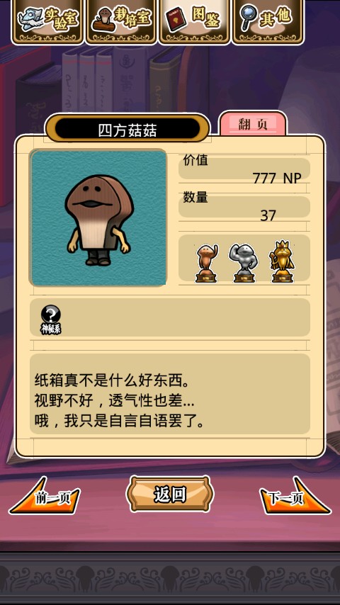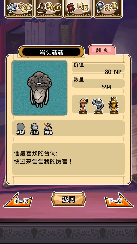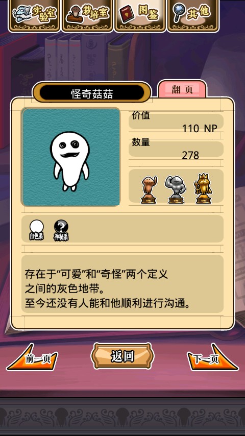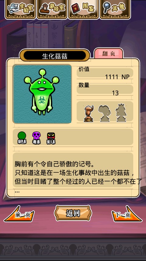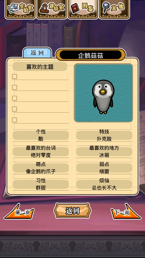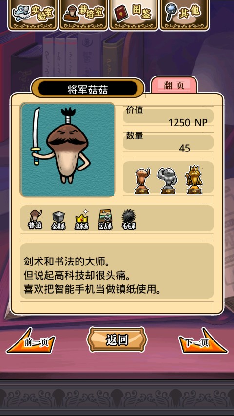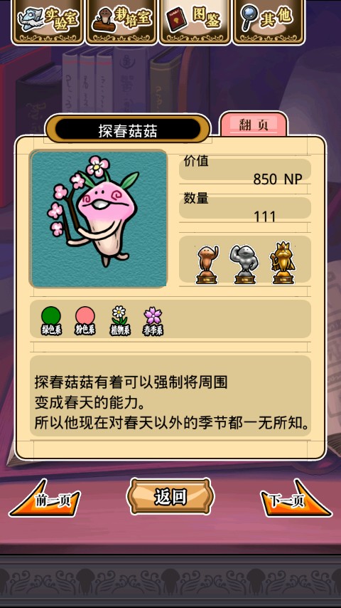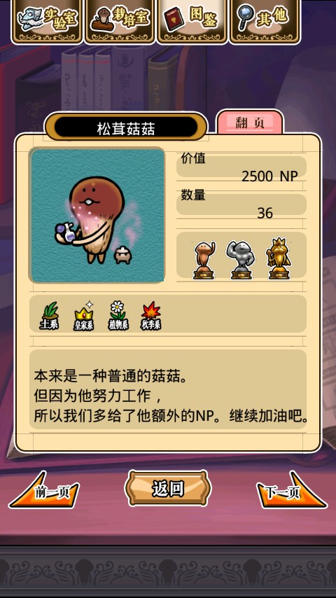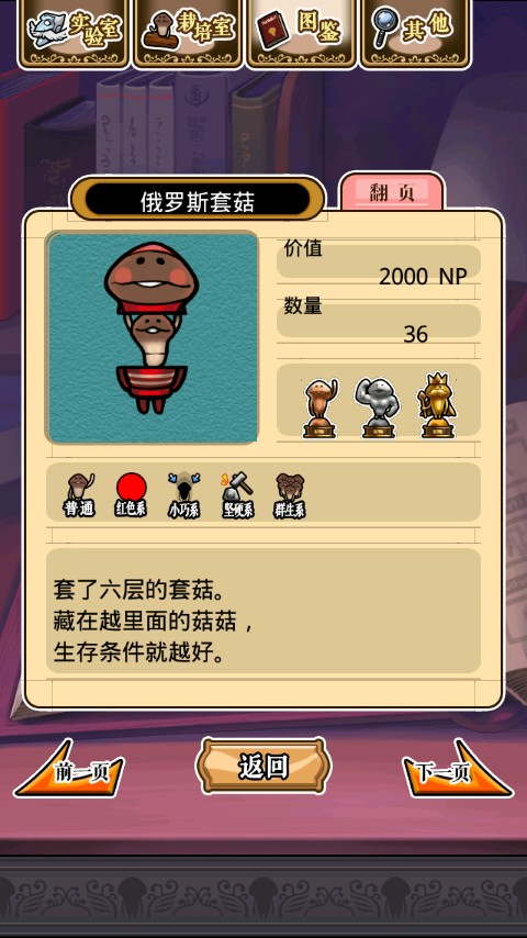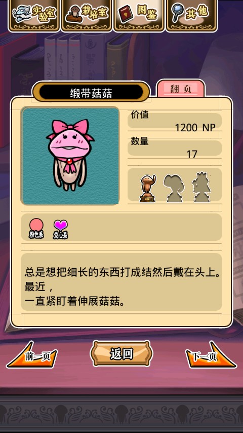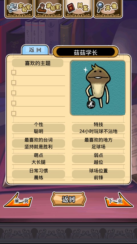 菇菇们的简介都很有趣,这一点真的很用心。在不同的培养室中有些菇菇的外表会发生一点变化,这些就放在下面讲了。