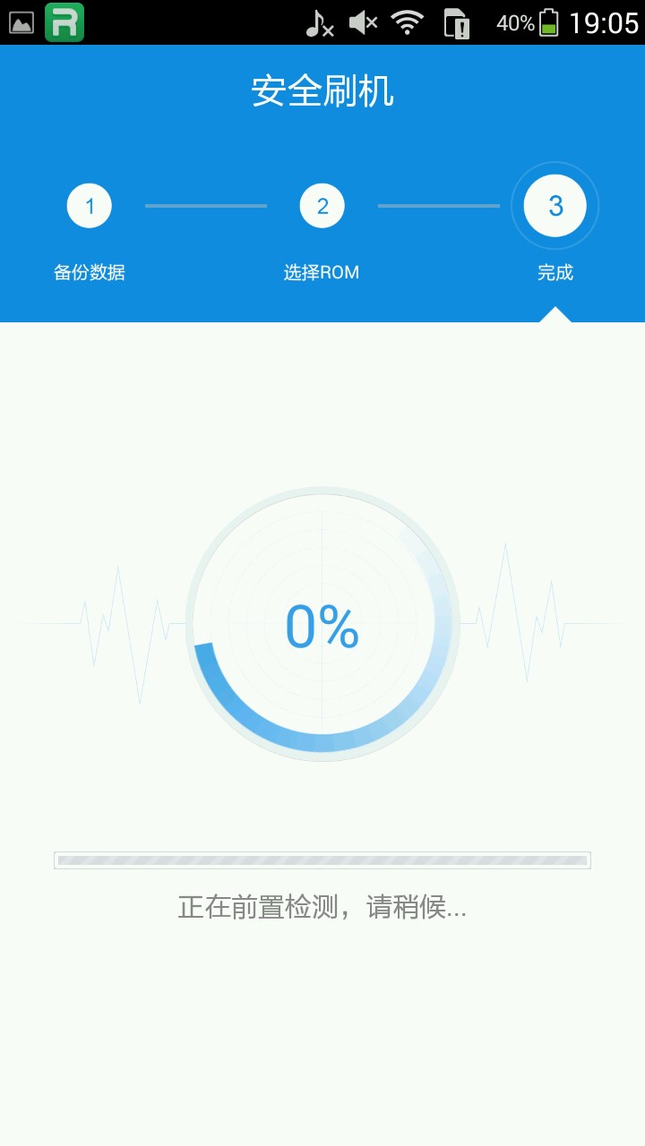 3.下载完成后(好像是点打开还是...不记得了),进入刷机页面,会显示检测ROM的安全,然后会自动下载刷机大师的recovery.还有适配数据