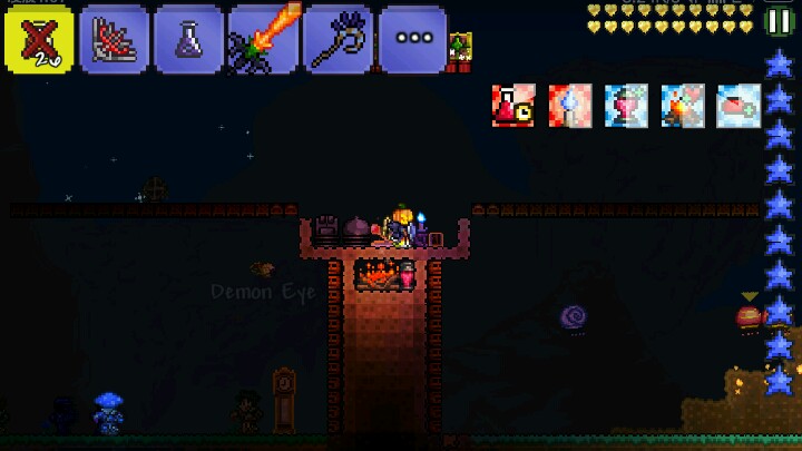 首先 你要有攻击力高的武器(最好还有点远距离比如自由短柄斧或泰拉之刃)其次你要有一个战斗平台在其次要有血药(虽然我不用)在在其次你要有翅膀打南瓜王时来回飞就好了……注意躲避那个金镰刀