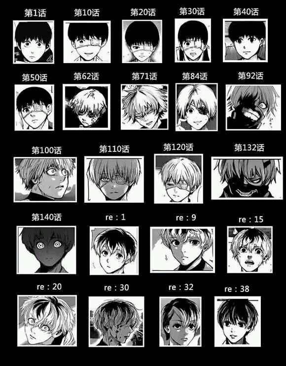 从开始到最后(漫画),大家的变化。金木真是从黑变白又黑回去……