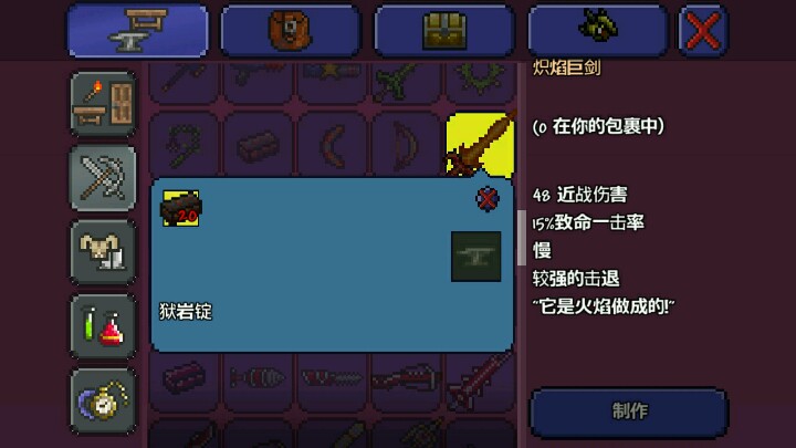 最好用你这妖刀村正和草痔 再用狱岩锭合成炽焰巨剑 用血金锭合成血腥屠夫 这四把剑在恶魔祭坛合成永夜之刃 新手必备 打肉山专用