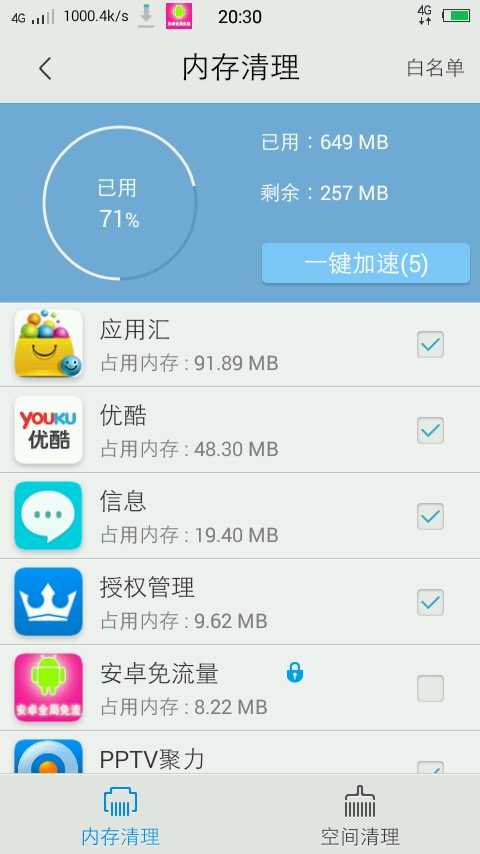 没一键加速,每次净化都要到软件里面去,差评(* ̄︿ ̄)