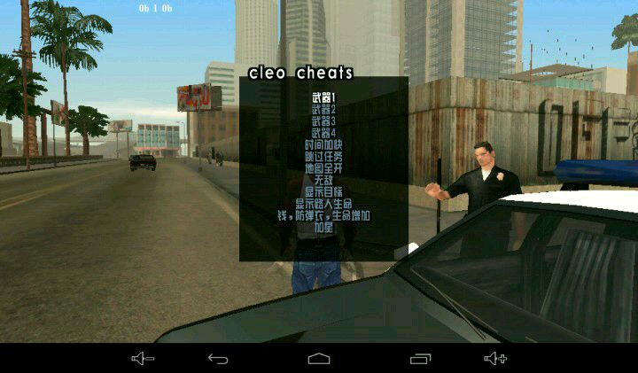 小黑在不经意中发现了,侠盗猎车手:罪恶都市已经植入了cleo。在屏幕中,望下滑。会出现菜单。第一个的功能小黑不知道,但是第二个是全武器+无限子弹。第三个是各种车,灰机,游艇。真的很好用。第四个是各种作弊码。而且游戏的血量可以自动恢复。以后再也不用怕条子了。阿帕奇直升机什么的再也不用全部地图的跑了。可以自由穿梭两个地图有木有。