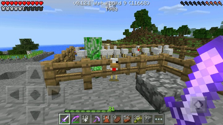 那是苦力怕 是自生出来的 在鸡的旁边插火把 可以防止怪物生出来