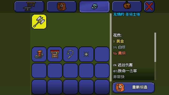 附魔挖过跳动的心脏或者暗影之球之后会有哥布林入侵打败这军队后到地下寻找哥布林工匠点击它后商店页面有一个空栏把装备拖到那或者哥布林头像那再点回那空栏就会在右下屏看到重新锻造……有钱后点它就是了