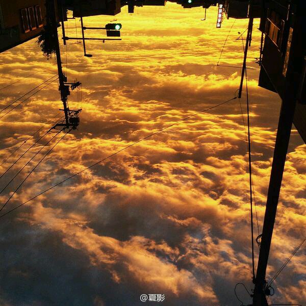 在霓虹推友中流行的一个玩法:你知道吗?把天空的照片倒过来,可以看到浩瀚的大海噢~
