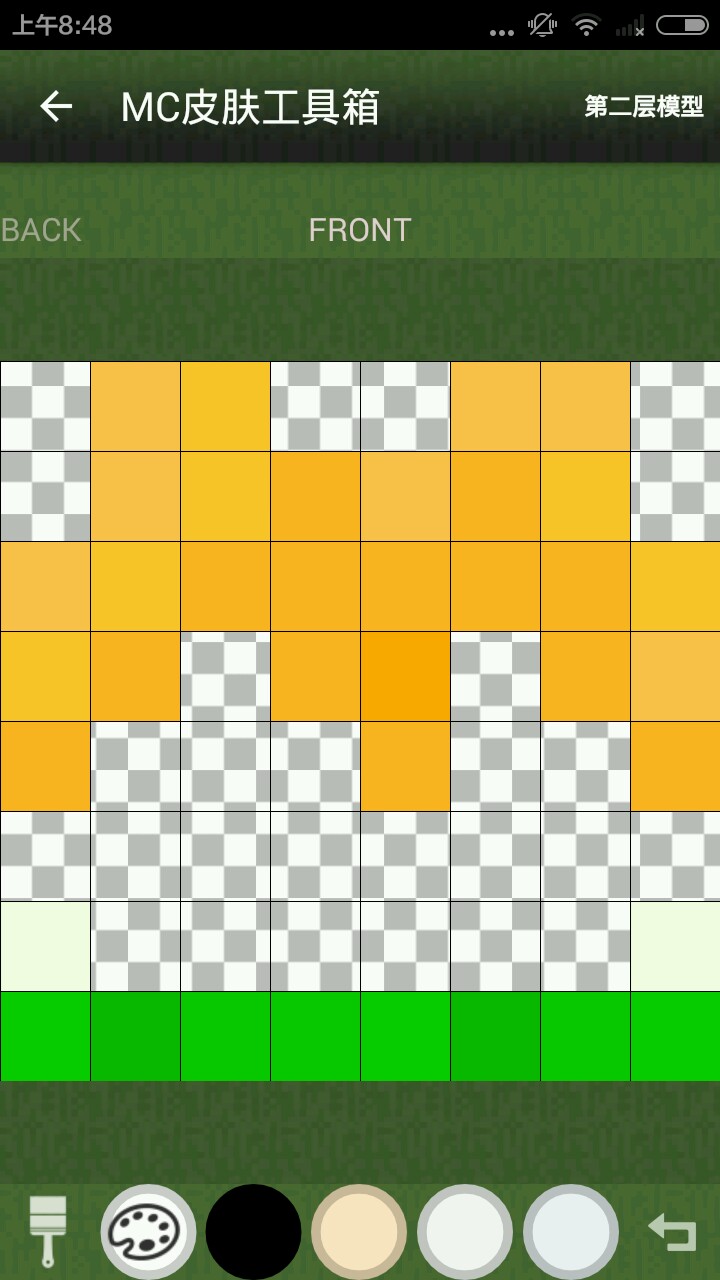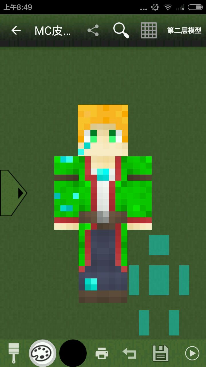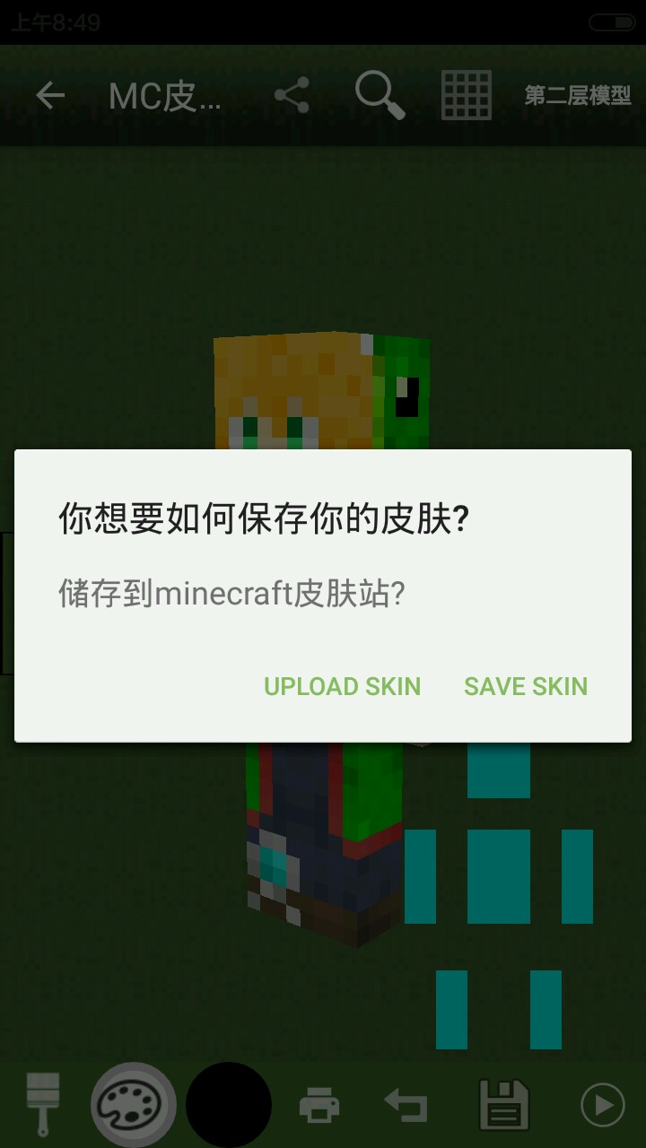 制作好皮肤以后,在总览中找到右下角的保存按钮,并一直选第二个选项,保存到任意文件(楼主保存到了360)之后进入游戏,就可以在最下方找到刚保存的皮肤了,效果也为双层皮肤。