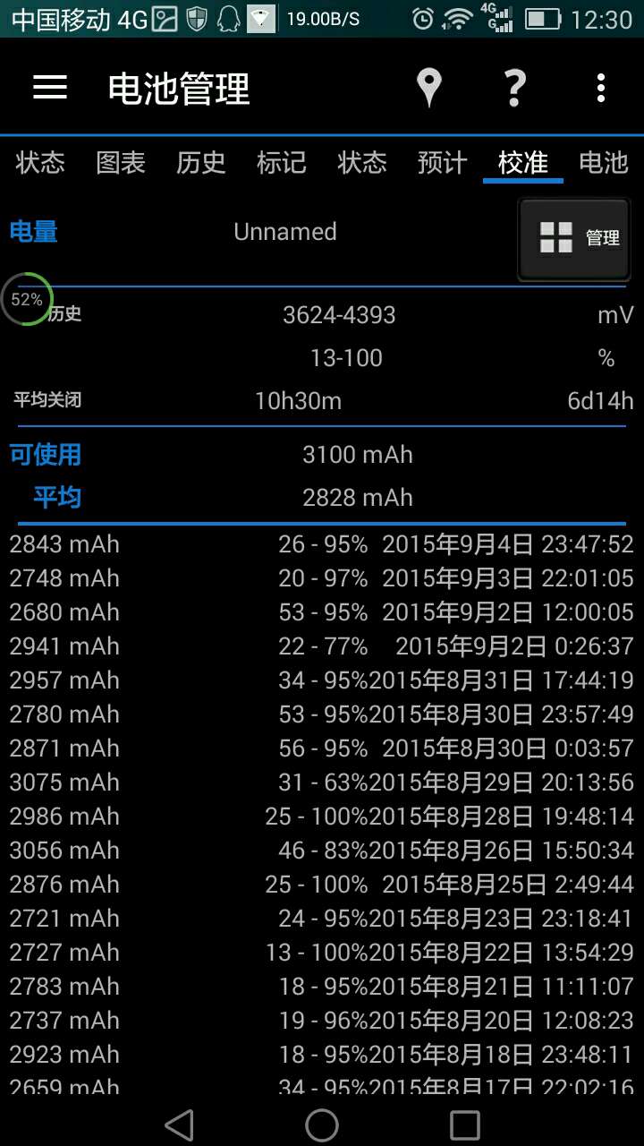 校准页:根据历次充放电周期的平均值预测