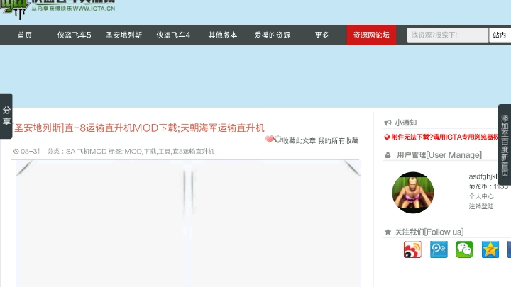 MOD不用说了,你们都知道,是修改人物,武器和车子的,可是怎么安装呢?我来告诉你们,好的废话不多说了,现在就开始吧! 先把游戏下玩然后进去之后保证有cIEo,然后下载一个MOD包,我建议大家下载一个7M的,运气好的话说不定会有cleo主城区,[不好意思我会打错字的] 把下好的东西放入IMG.C文件夹里面,然后就是复制粘贴,这个不用我说了吧?然后把IMG文件放入cleo主城区里面,在复制的可是关键的,一旦放错可能无法完成,复制的主要就是说你家的外面没有飞行器的,一下子就有了,还是高达飞行器,所以很关键的,然后里面可能有说明书的,你们可以看看,把文件放好之后就进去,里面你会发现有很多的密密麻麻的文件,然后把人物放进去,没有替换会多一个人的,点一个文件会出现替换的,点击替换,人物就换好了。《特殊提示:我说的可能会影响游戏无法进入或是闪退的情况,所以建议不要多放入东西,不然游戏陈寿不了》 很多方法你们也可以试试