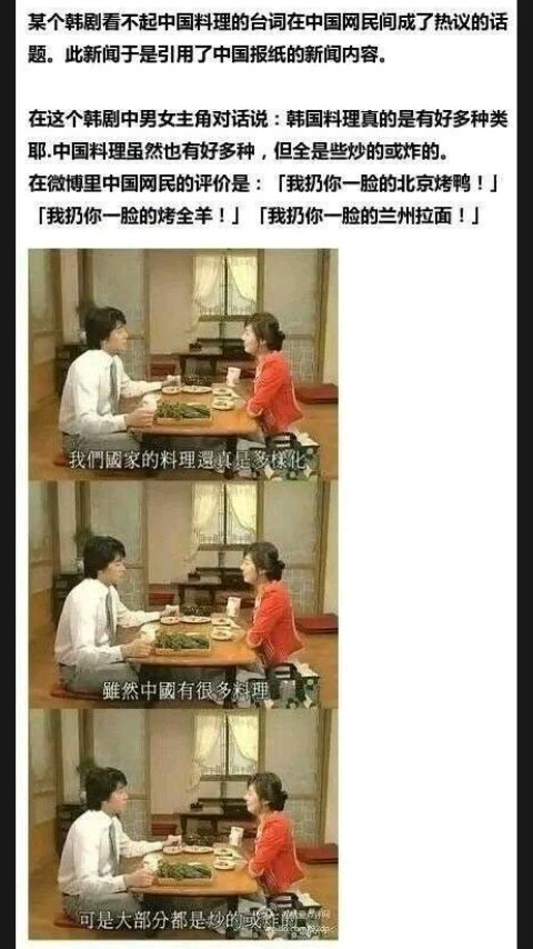 额,某韩国电视剧看不起我大天朝的美食,国人第一反应当然是反驳啦!but,日本人的评论亮了,而且主要是第一个最神理解了