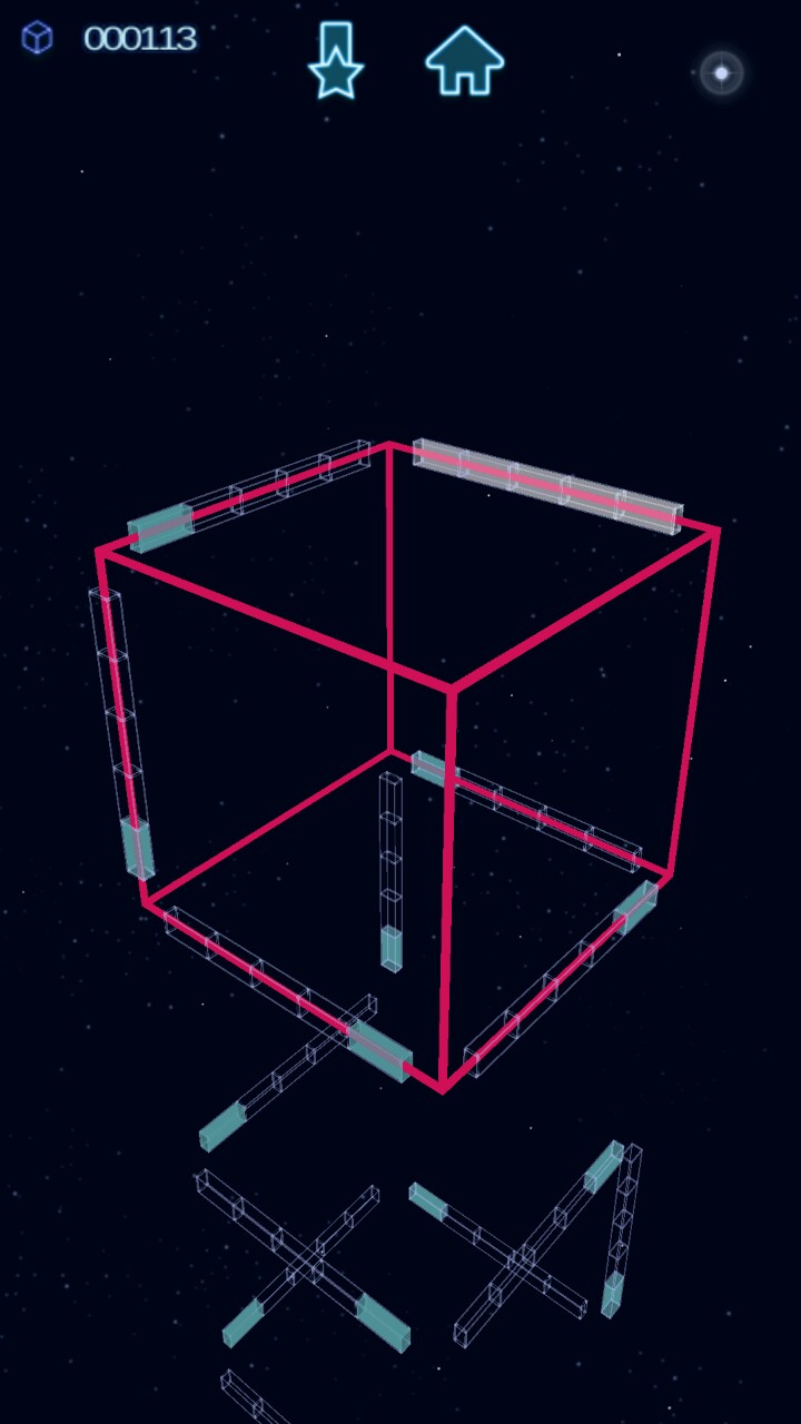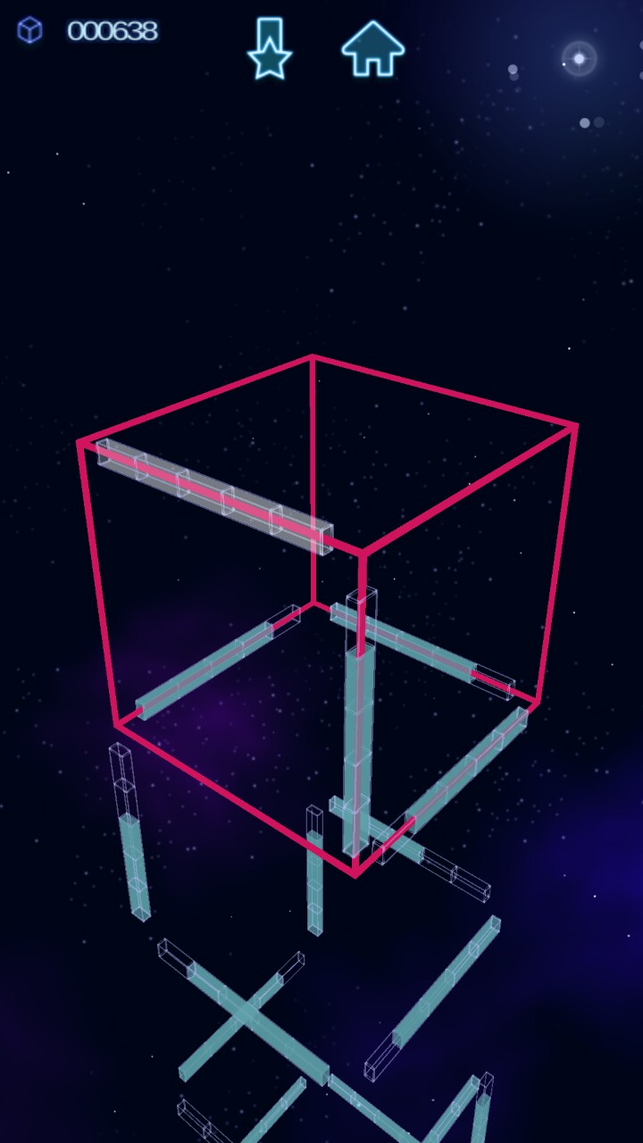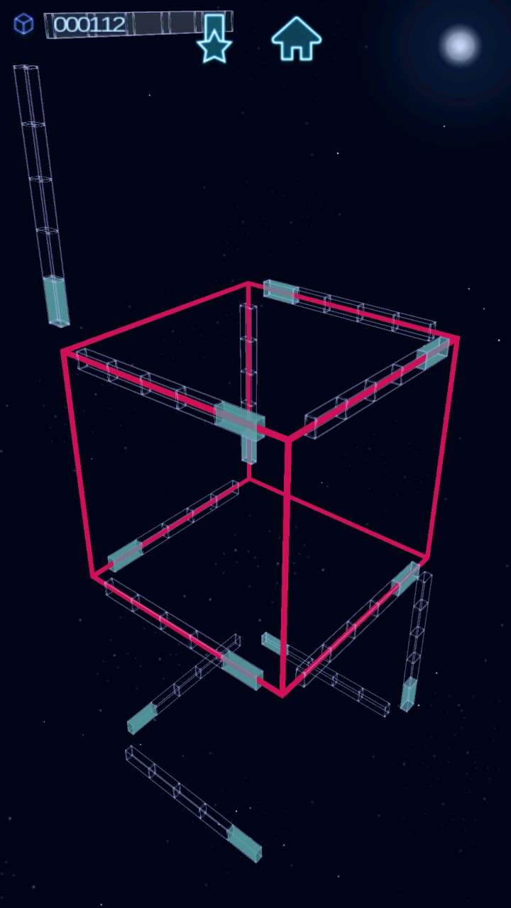 简单介绍游戏玩法;通过上下左右滑动屏幕,让屏幕下面的立体图形的主视图(正面看到的图像)和屏幕上面的屏幕的平面图形一致,即可点击屏幕通过。