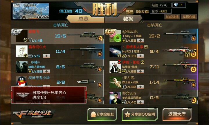 于是,我就花了4小时玩了下,第一个感觉就是:太特么像CF了@( ̄- ̄)@,地图连守望之城都成了团队竟技。本人不才,一不小心十五连杀,死亡0次。。。。。。但别的不说腾讯虽坑钱,但画质还是不错滴,控制比全民枪战容易点(我还是喜欢全民枪战多点)但是新手指导很烦,要闯关,(我花了两小时)狙在里面并不是很吊,很难控制(对我来说,因为长时间玩全民枪战)M4很不错,好了,说完了我来炫张图@( ̄- ̄)@