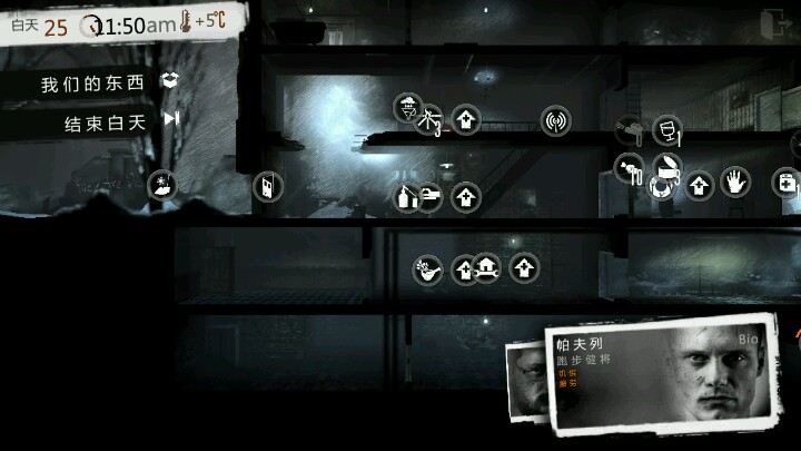 活到13天我就感觉活不下去了,刚刚叫跑男(帕夫列)去仓库报仇,结果受了重伤(原谅楼主技术差),但不过,我还是偷到了一个包扎带,一个罐头,还可以啦!