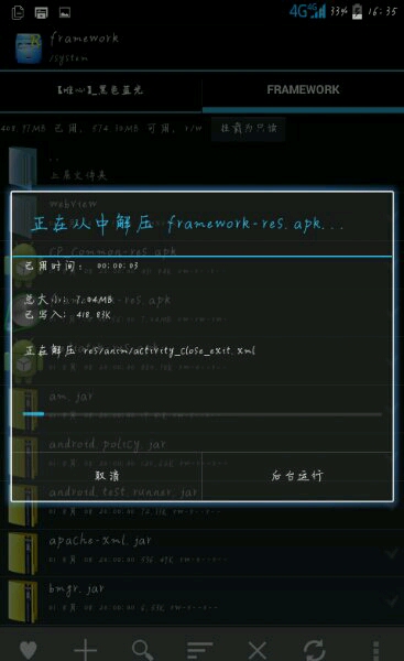 然后到 根目录 syarem ——framwork找到framwirk.apk 长按 解压