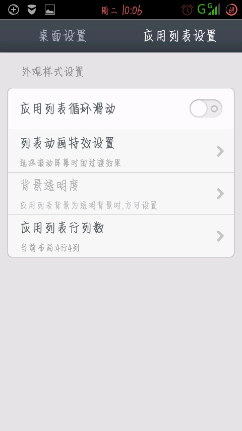 然后是应用列表设置,我已经设置了应用列表循环显示为关闭,设置了的确是对的,但是!!每次只要一更换主题,应用列表又循环滚动起来了(ノ-_-)ノ~┻━┻